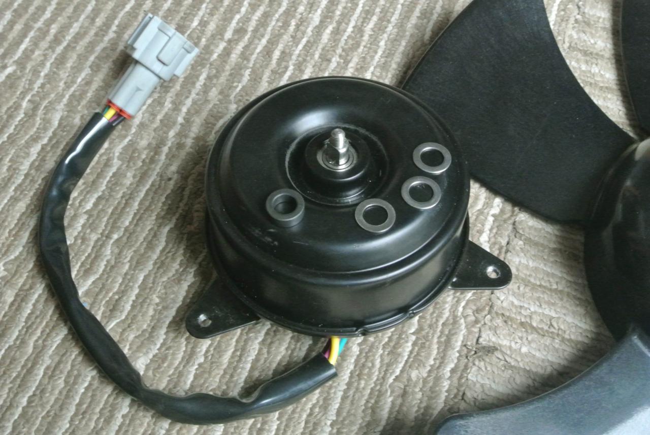 | In addition, I replaced the spacers to adjust the clearance between the fan and the radiator fins. The spacers that came with the motor were too close to the radiator. In the end, all I needed for installation was the fan motor, the fan, mounting screws, an eccentric washer to secure the motor, and a spacer to adjust the fan height. |