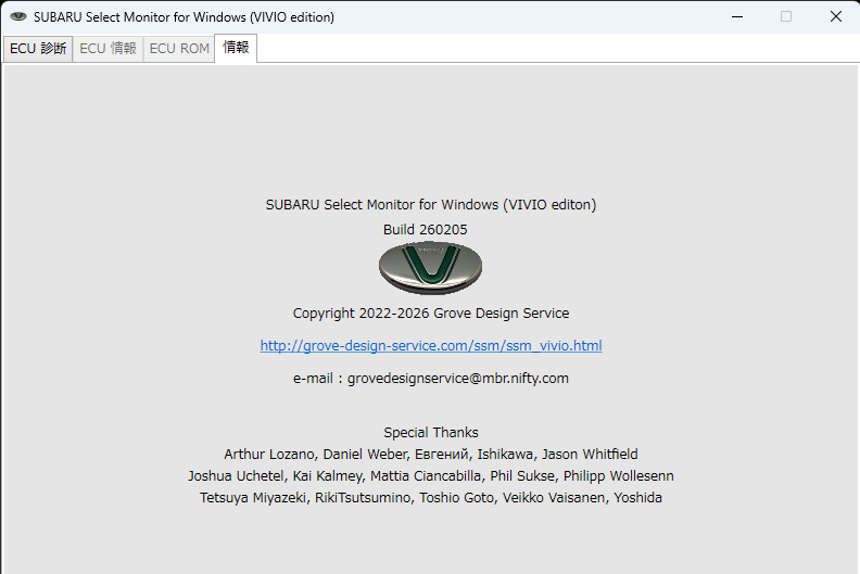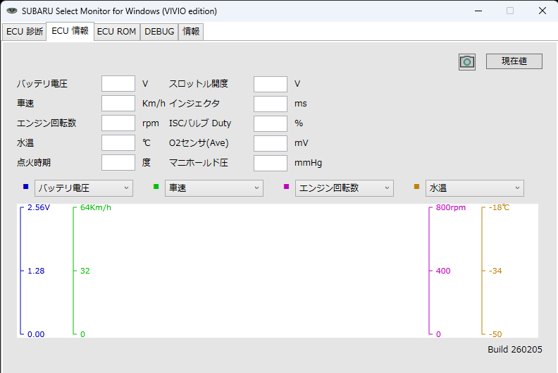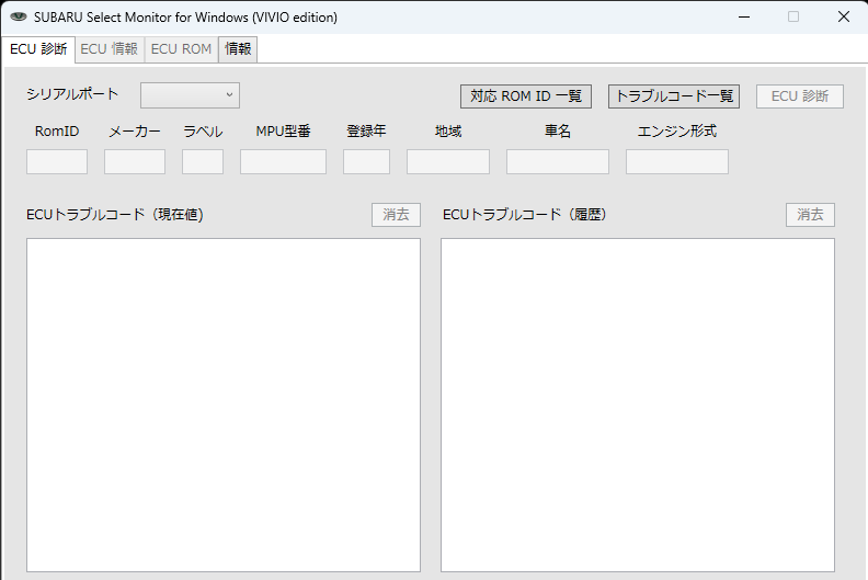 ダウンロードとインストール 下記のリンクからzipファイルをダウンロードして、PCの任意のフォルダに解凍してください。レジストリは使用していません。設定の変更はインストールしたフォルダ内の"select_monitor.ini"ファイルに保存されます。なお、iniファイルでは他車種対応のためのカスタマイズはできません。(他車種への対応はリクエストがあれば検討します) SUBARU Select Monitor for Windows (VIVIO edition) Build 260205 右クリックでダウンロード ベータ版対応済みECUのROM IDと対応について 現在対応済みのVIVIOのECU ROM IDは以下の通りです。ROM IDが登録されていない場合、ROMデータの読み出しのみ機能します。ROM IDと諸情報、ROMデータを送付いただければ登録させていただきます。